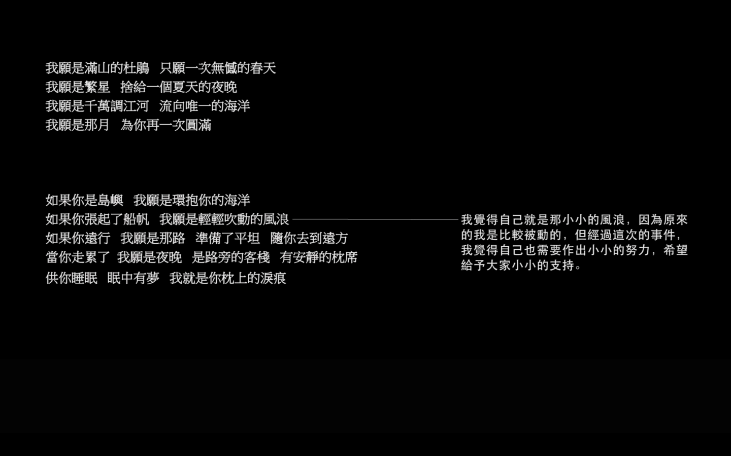 果你遠行 我願是那路 準備了平坦 隨你去到遠方